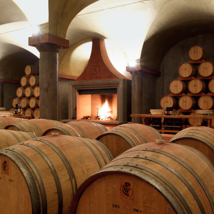 Un'ambiente unico nel suo genere, ideale anche per l’organizzazione di eventi, grazie agli ampi spazi ed al maestoso camino, e studiato nei minimi particolari: 8 metri nel sottosuolo e 2 metri di ghiaia sopra le volte, garantiscono una temperatura di 13/14 gradi ed una igrometria costante tutto l'anno, ideali per l'invecchiamento del vino in barriques.
